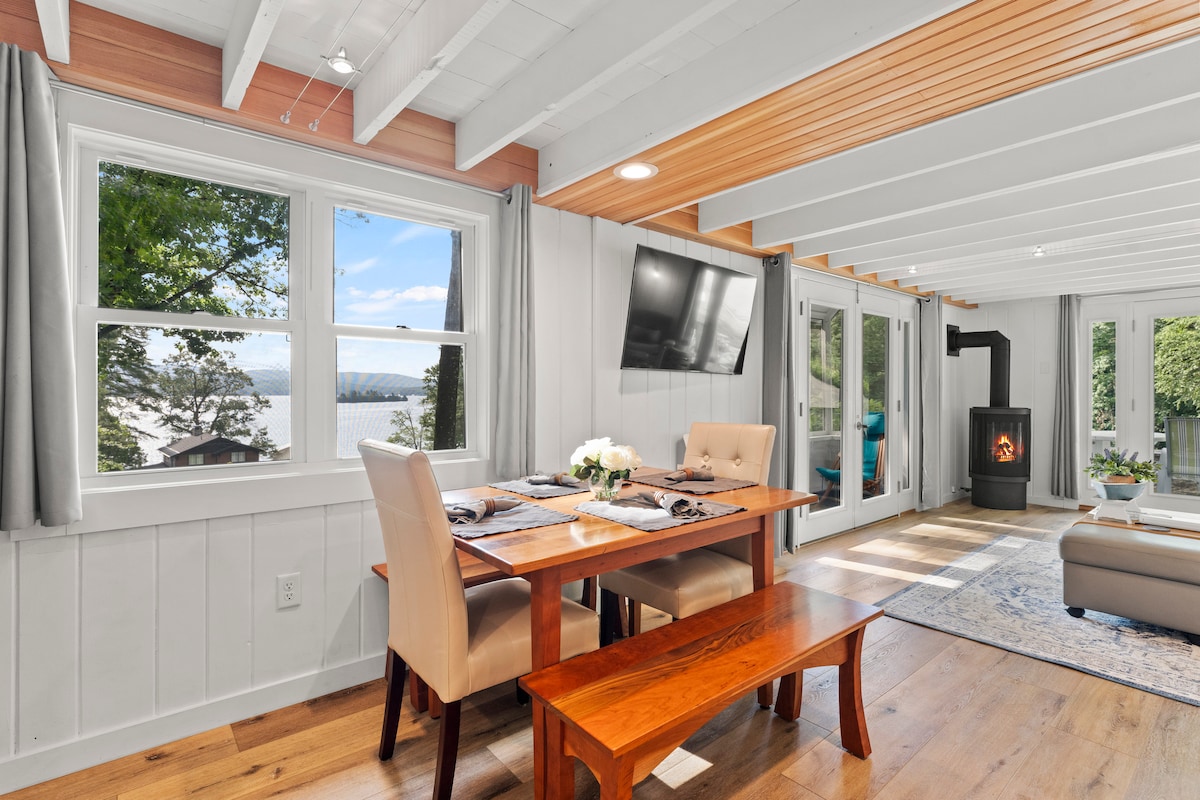 La Bella Loona - A beautiful 1 bd cottage located directly on Schroon lake. Amazing mountain and lake views from every window. 50' of direct water access with small sandy beach, outdoor firepit and grill, and multiple hang out spots. The cottage is newly built and furnished, has an indoor fireplace, central AC, fully stocked kitchen, and screened in room overlooking the lake. There are 2 kayaks available for use. Be assured everything is provided to make your stay as comfortable as possible.