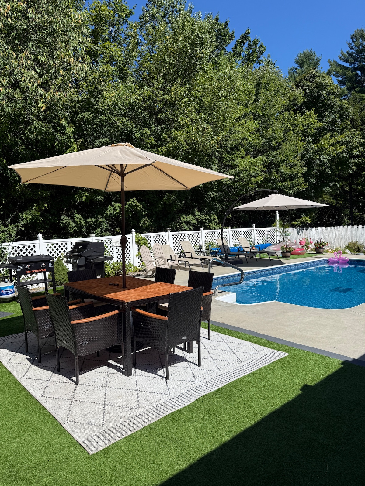 *Peaceful retreat nestled in The Adirondack Park just 10 minutes to Lake George in a quiet neighborhood *A dreamy Master with attached bath where you wake up feeling like you are still dreaming *Amazing outside area complete with firepit ,Pool and grill perfect for memory making *high speed internet and perfect for those working remotely * We strive for all our guests to have nothing less than a five star experience Pool is open until the end of September