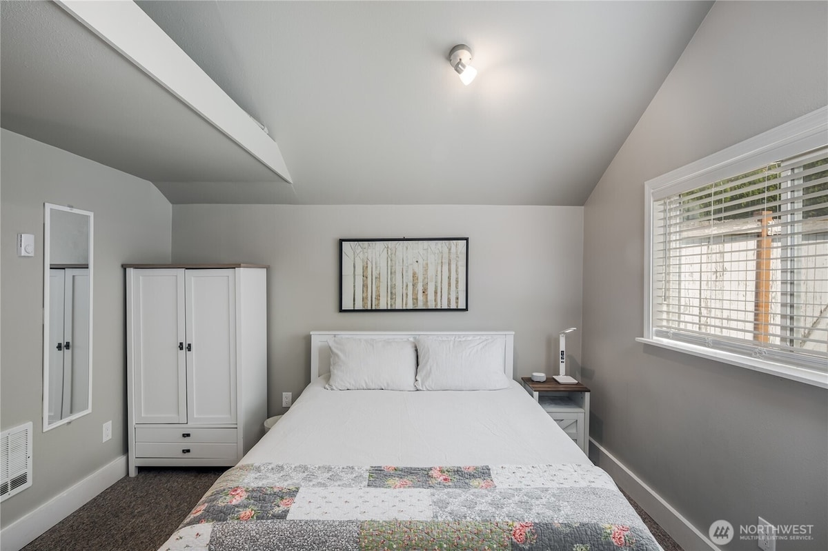 Private cedar home situated on 6 1/2 wooded acres. Just a short hour drive from Seattle. This home features one private bedroom downstairs and a larger, brightly lit loft bedroom upstairs. The mid century decor combined with the updated kitchen and stylish details throughout make this accommodation the perfect getaway. A quick 25 to 30 minute drive to the TULIP FESTIVAL!!! Take the scenic route down Pioneer Highway. Don't forget to keep your eyes open for the Snow Geese!