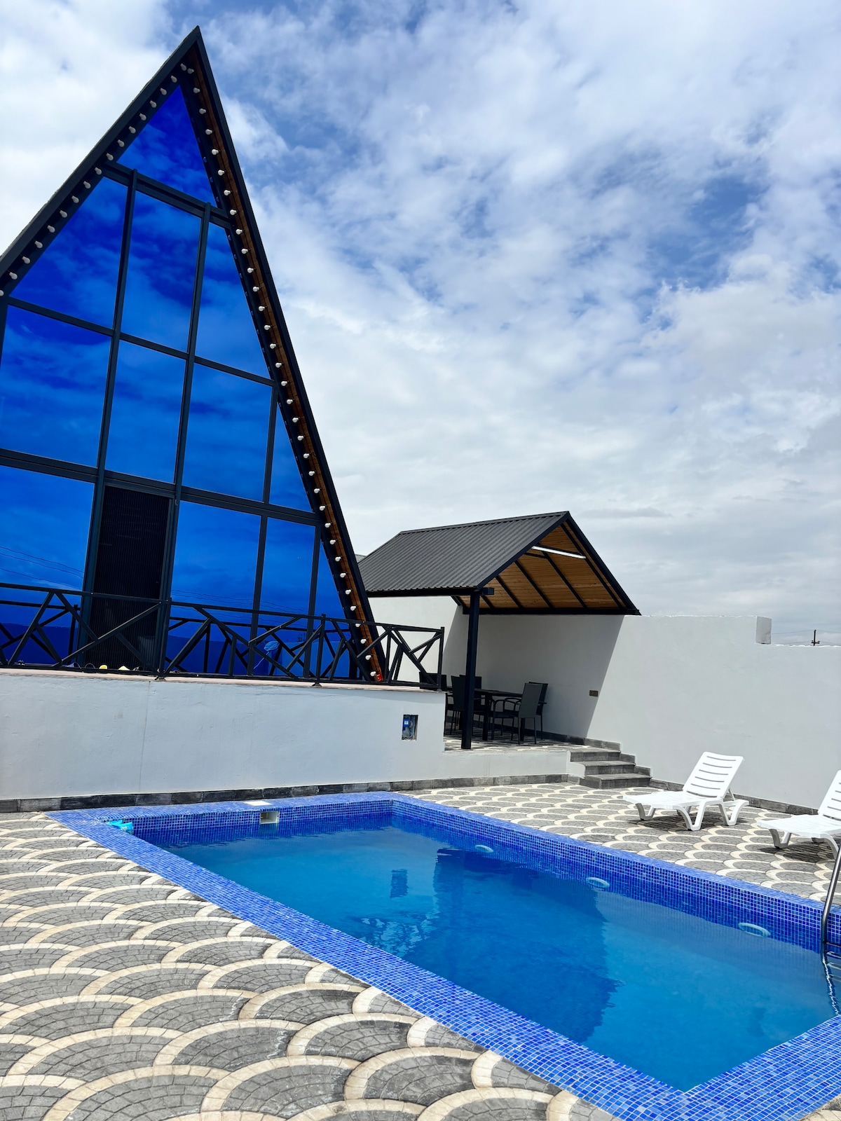 Cozy A-frame villa just 20 minutes from Ganja, surrounded by the stunning nature of Göygöl. Perfect for 5-6 guests, featuring 2 bedrooms, living room, private heated pool, BBQ, Wi-Fi, and traditional samovar. Relax, enjoy privacy, comfort, and unforgettable views in a peaceful getaway.