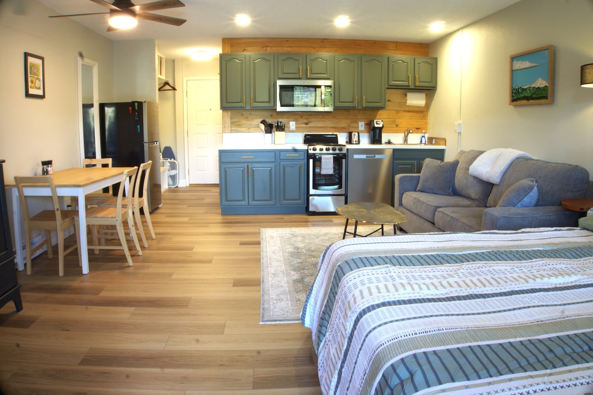 This 2nd floor studio is located at the Inn at Silvercreek in Granby Ranch. It is 495 sq ft. Inside the studio has been updated and is stylish and cozy. The resort offers many amenities including pool, hot tubs, an arcade, a gym and even a barber shop. The location is about 5 min from the Granby Ski area, 20 min to Grand Lake and 30 min to either RMNP or Winter Park. There is a free “Lift” shuttle to Winter Park during the ski season.