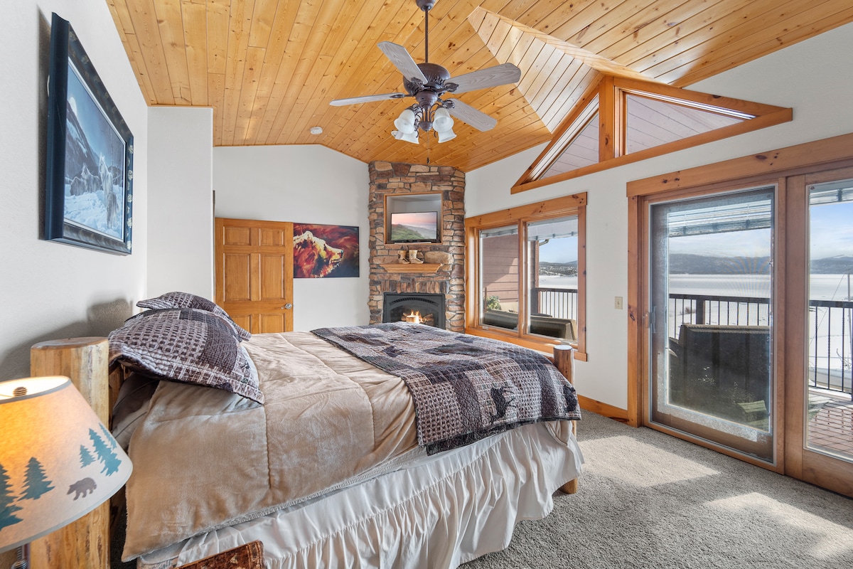 大湖景观、舒适的壁炉、拖车停车位