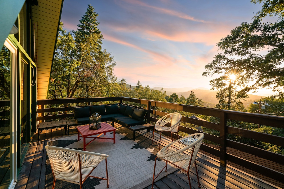 平均评分 5 分(满分 5 分),共 103 条评价温馨绿色小木屋Crestline-热水浴缸/步行前往小镇