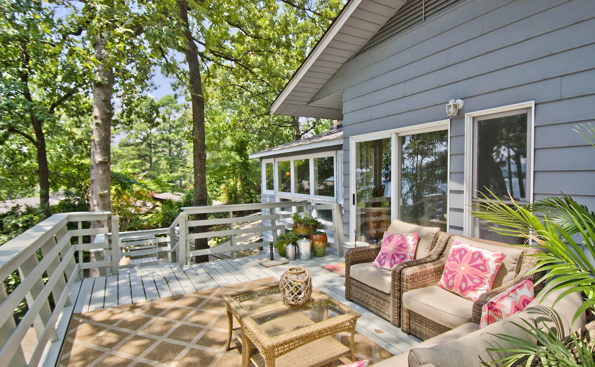 Escape to this newly renovated lakefront condo on Lake Hamilton featuring a king suite, gourmet kitchen, and an expansive patio with stunning water views. Enjoy direct lake access, a boat slip, pool, and tennis courts. Perfect for couples or small groups seeking a modern retreat close to Hot Springs attractions, dining, and outdoor adventures.