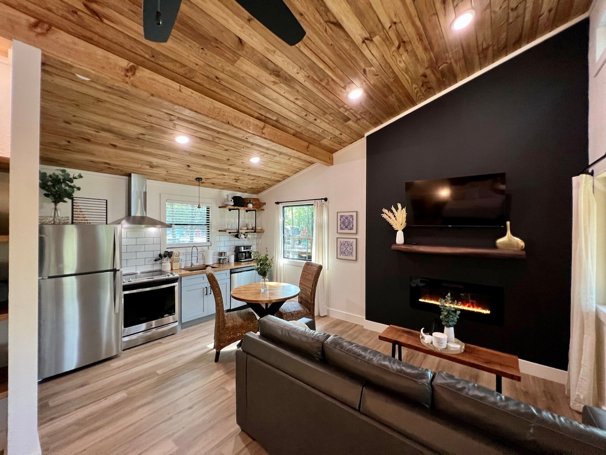 The Robin’s Nest Cabin is located in Hot Springs, Arkansas. It’s rustic on the outside yet filled with modern amenities. Enjoy woodland views while relaxing in the hot tub or sit back at the fire pit and enjoy s’mores and your favorite beverage. The property is also surrounded by wooded trails that lead to a waterfront cove on Lake Hamilton. Kayaks are available for use Mar.-Oct. The Robin's Nest is perfect for a romantic couples getaway and close to everything in historic downtown Hot Springs!