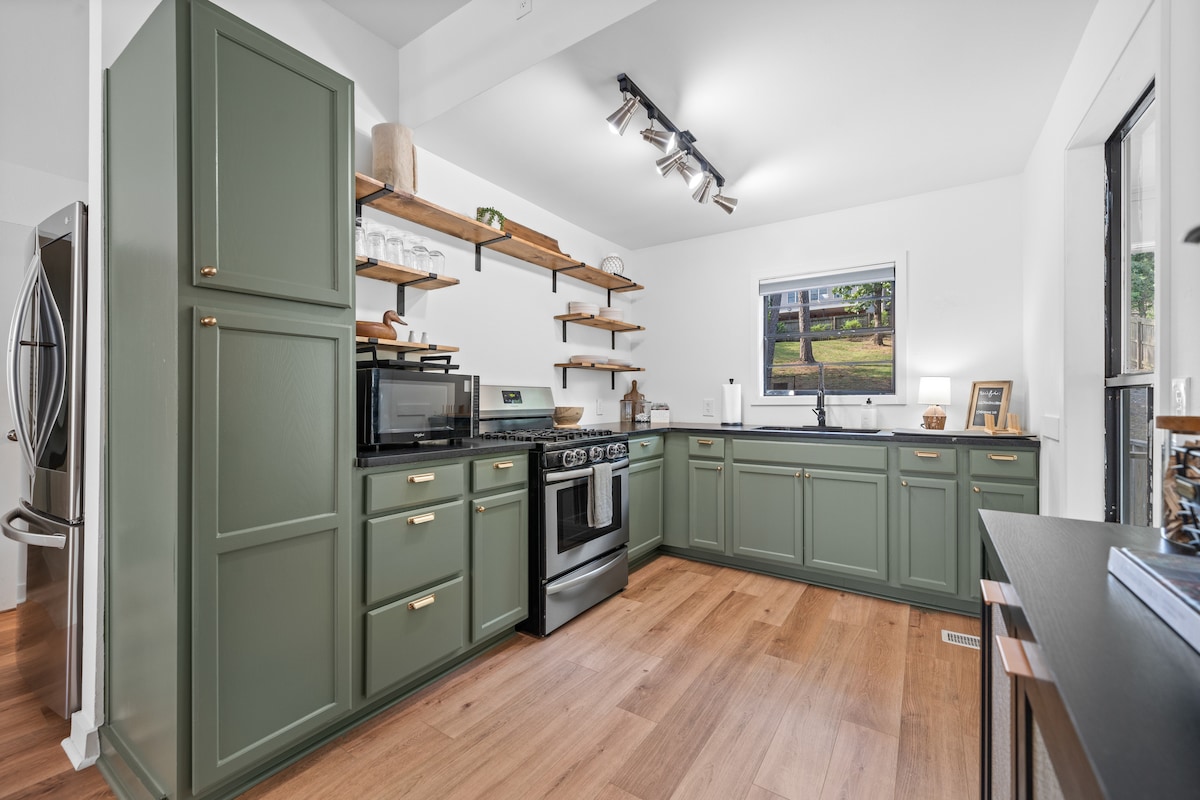 Lake front*cedar hot tub * kayak * canoe * fire pit * outdoor shower * Tesla universal charger * grill * screened in porch * We JUST custom-built this waterfront, "Treetops Hideaway on the Water" for our retirement; you get to stay here instead of us (and we are jealous.) It has a full luxury kitchen, LG frontload w/d, king beds, original art, estate furniture, and amenities. This is a private entrance two-bed, two ensuite bath cottage with walk-in showers and Kohler soaking tub at 1800 SF.