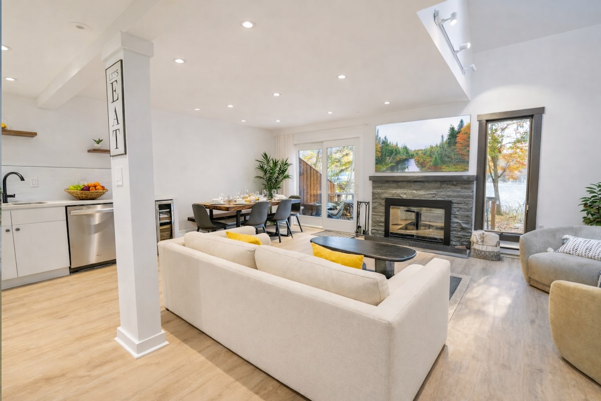 Unwind in our secluded lakefront cabin featuring a hot tub, crackling fireplace and sweeping lake views. What you’ll love: * Steps to the lake—grab the kayaks, SUP or canoe and explore, BYO boat available * 6-person hot tub under the stars * Cozy wood-burning fireplace & fast Wi-Fi * Superhost service: 1-hour average response * All season: Minutes from ski slopes, golf, hiking trails and quaint mountain towns—perfect for couples’ retreats or small families Book now —peak weekends fill fast!