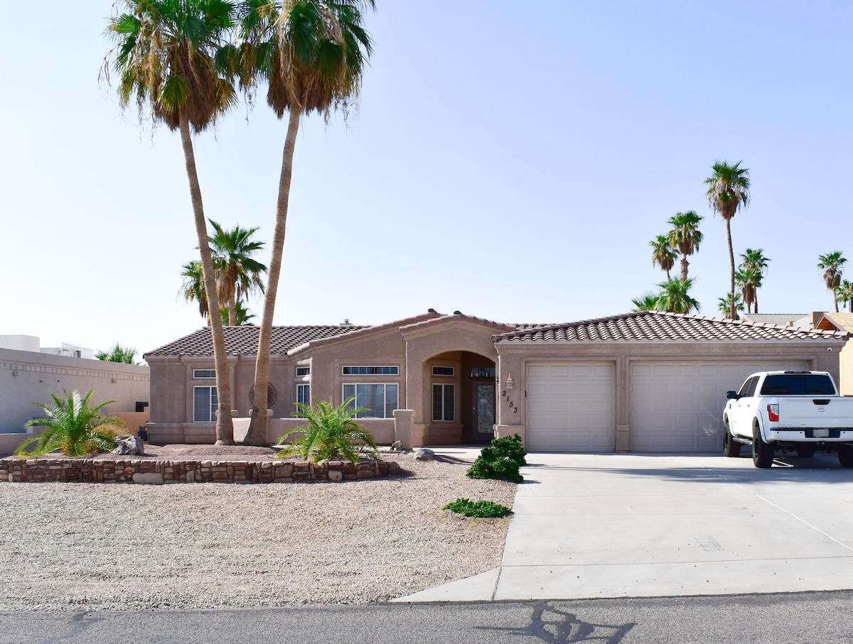 Welcome to Havasu Hacienda! A tastefully updated home in Lake Havasu City. Relax and enjoy this 3 bedroom 2 bath Spanish Style home designed specifically for family friendly gatherings. Offering comfortable furnishings and tasteful finishes, including a dedicated game room. Located a short distance to Downtown bars, shops, restaurants, and multiple launch ramps. We look forward to hosting your next Lake Havasu getaway. Bring the whole family to this great place with lots of room for fun.