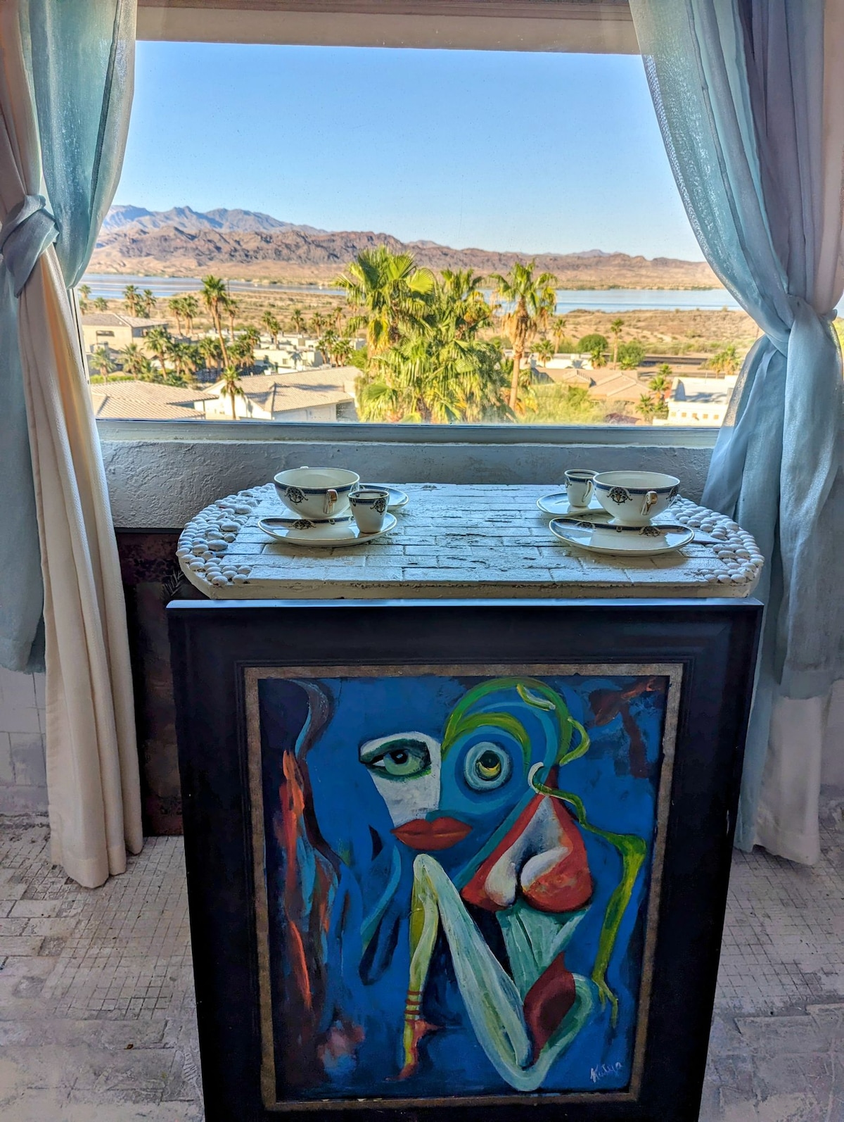 Welcome to “Classic condo”! This is a down stairs unit. BONUS! It has 2 patios. 672 sq ft of cozy, cool and functional vacation living. The Finishes, from the ford tailgate, to “classic beach beauty art and more will make you smile, kick back and unwind. This is a special one of a kind condo with care in every corner. Hope you enjoy it as much as we do! Follow @havasu.classiccondo share photos from your stay, tag #havasuclassiccondo TPT Tax# 21318426 permit:24 0046077