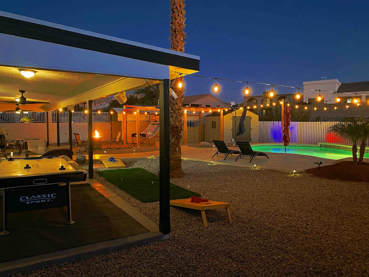 Newly renovated Lake Havasu home featuring modern décor, a new pool & hot tub. Relax in style with updated amenities and a spacious layout. Create unforgettable memories while doing your favorite activities including 36-foot pool, gas grill (Bring your own propane) horseshoe pit, corn hole, campfire, boating, fishing and much more with the whole family at a peaceful place. Plenty of parking available for your boat or RV.