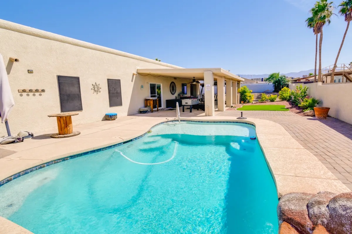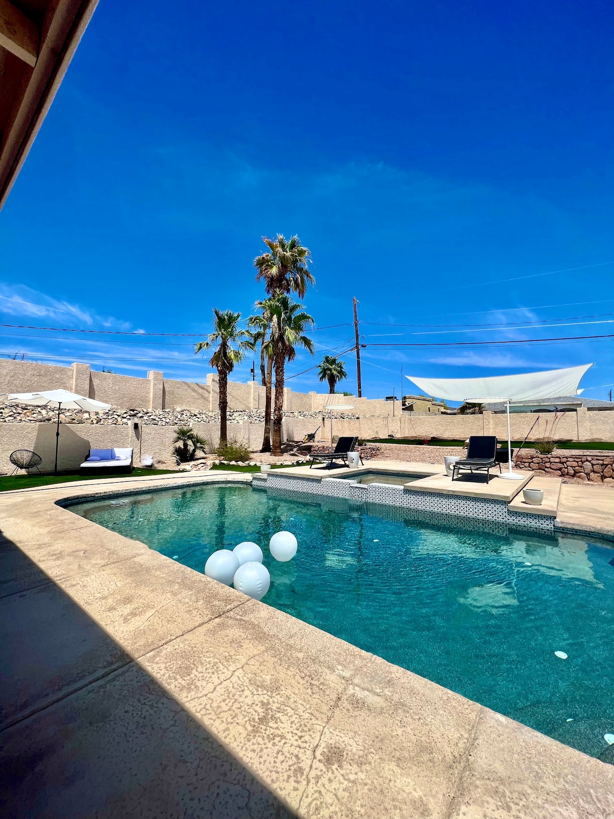 Havasu's Hideaway is a 5 Star stay destination. Sparkling pool maintained with a comfortable temperature, except winter from Dec. - March. Backyard oasis, boasting private and enjoyable features. Inside are all of the comforts and amenities of home, and we also welcome the Fur Babies. Evenings on the front patio will display gorgeous sunsets at Havasu's finest. We offer an EV Charging Station. (adapter for a Tesla will be the guests responsibility).