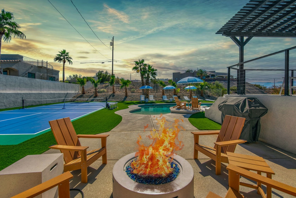 ⭐️ 3000 sq ft w/ luxury design and decor ⭐️ Mins to Riviera Marina and Downtown ⭐️ King Size Beds ⭐️ Hammock, games & putting green ⭐️ Golf Course and Mountain View’s ⭐️ Located on second green Our fully renovated Indoor-outdoor vacation home is a true experience in Lake Havasu City Nearly 3000 square feet and room for 14 guests, The Clubhouse looks like a 5-star resort, and feels like a home crafted with love. Amenities include a pool, hot tub, hammock, putting green & fire pit.