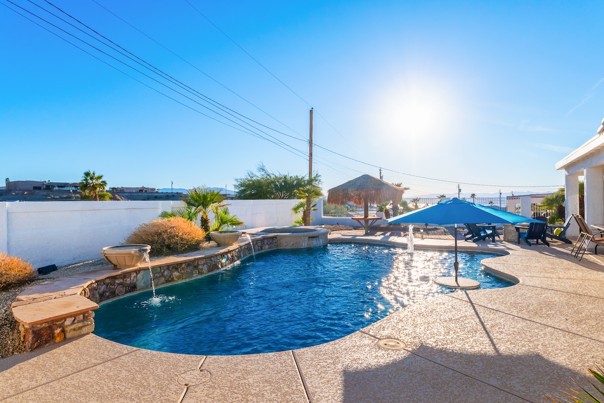 哈瓦苏宿醉 游戏室、湖景、泳池和热水浴缸