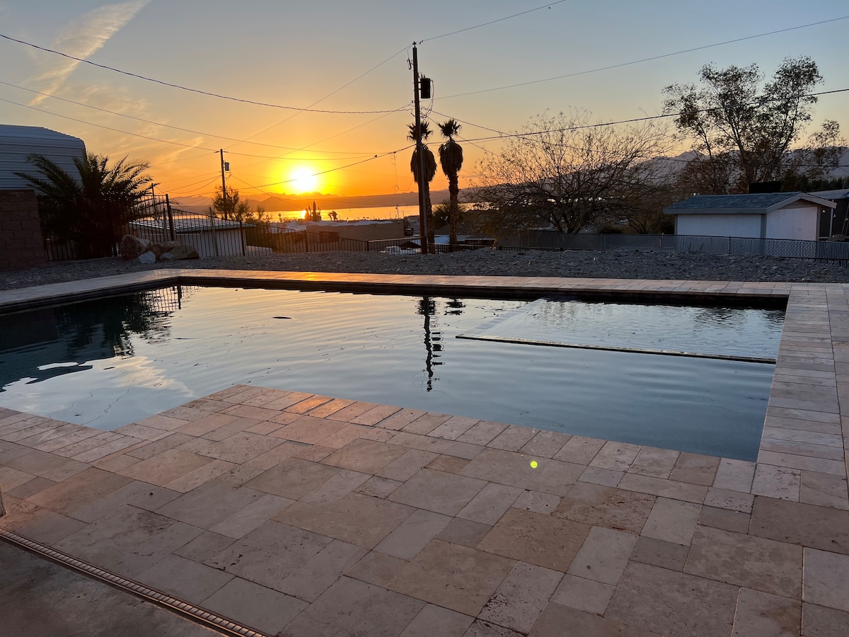 The pool and spa has been freshly remodeled with Pebbletech and new lighting. Located in a quiet family neighborhood has queen bed, double in guest rooms and kingsize bed in master. the elect fireplace and heated spa in the winter and pool in the summer (extra chg to heat pool). New LVP flooring, new window coverings. RV w/ 30 amp and boat parking. Smart TVs in lvg room and main bdrm, internet, Direct TV. Close to new Riviera Marina and mins to the London Bridge. 45 mins to Parker.