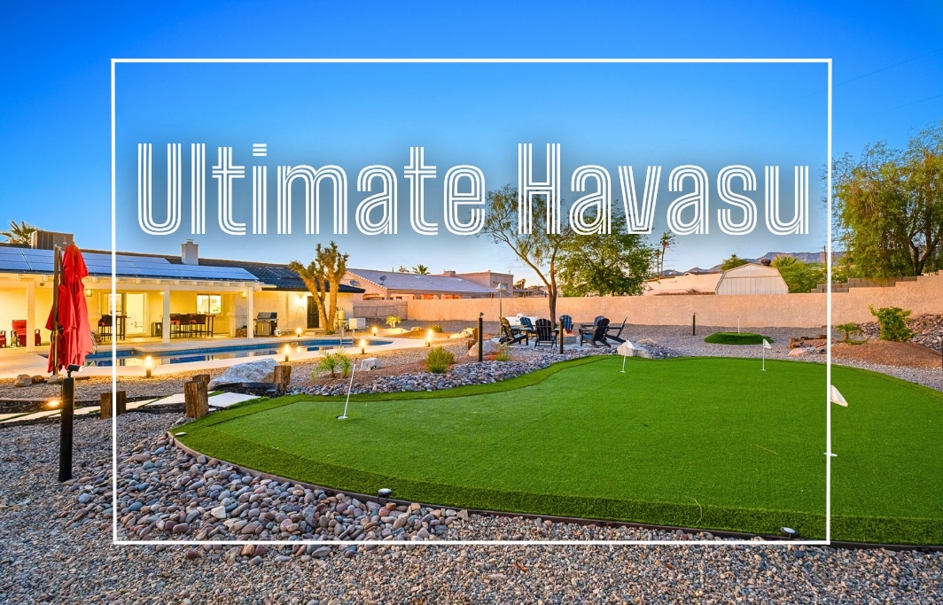 A Unique and beautiful 2500 sf home that bumps up to the golf course in Lake Havasu. A large living space for lounging, with cable tv’s, WiFi, swimming pool and bbq grill. Master bed has a king bed, closet, TV, walk-in shower and dual sinks with a nice tub to relax in. Bedrooms 2 has two queen beds Bedroom 3 has two sets of twin bunk beds This is truly a great property! for couples, solo adventurers, and business travelers!