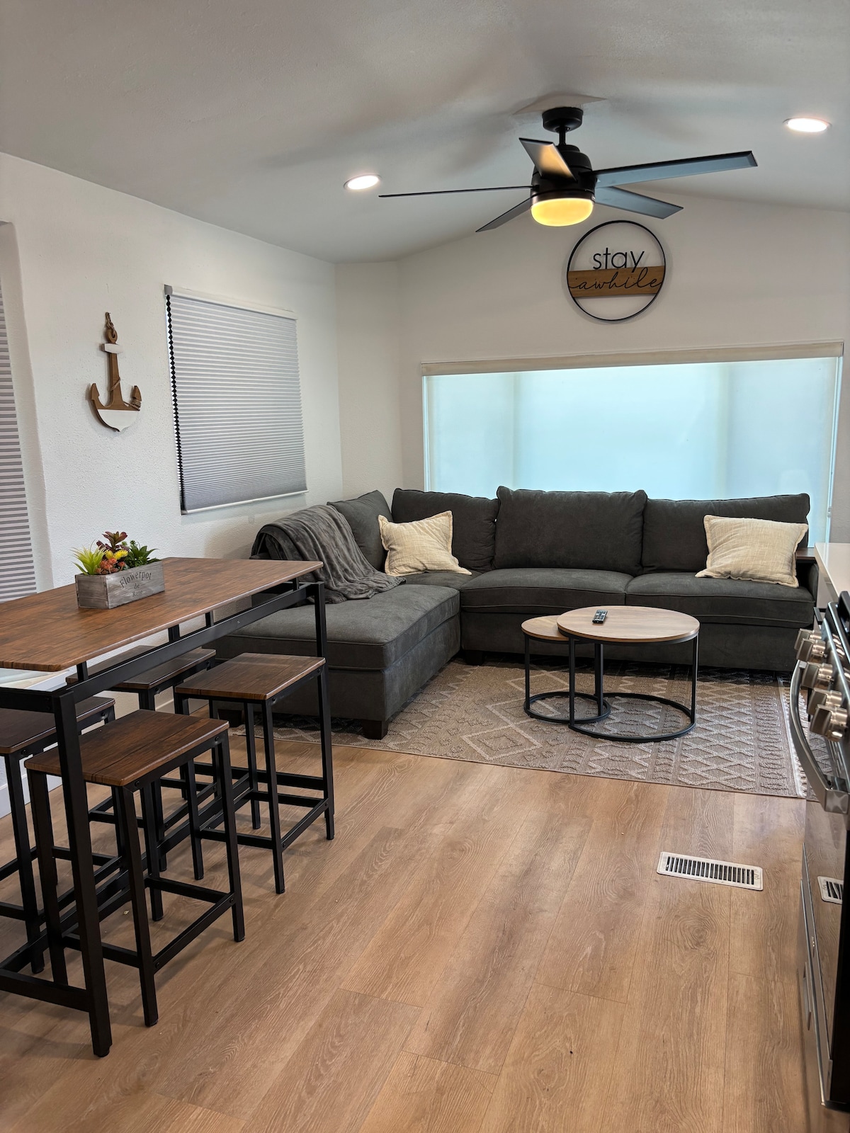 This beautifully renovated 672 sq ft upstairs one bedroom one bath condo features granite kitchen counters and is within walking distance to Rotary Park, the lake, London Bridge, golf course, and fun dining. Our condo sleeps four and offers a bedroom with a king bed and TV. The main living area offers a queen hide-a-bed. Additional features include, free wifi, a small capacity stack washer/dryer unit, and walk in closet. It’s our intention for you to create wonderful memories of Lake Havasu