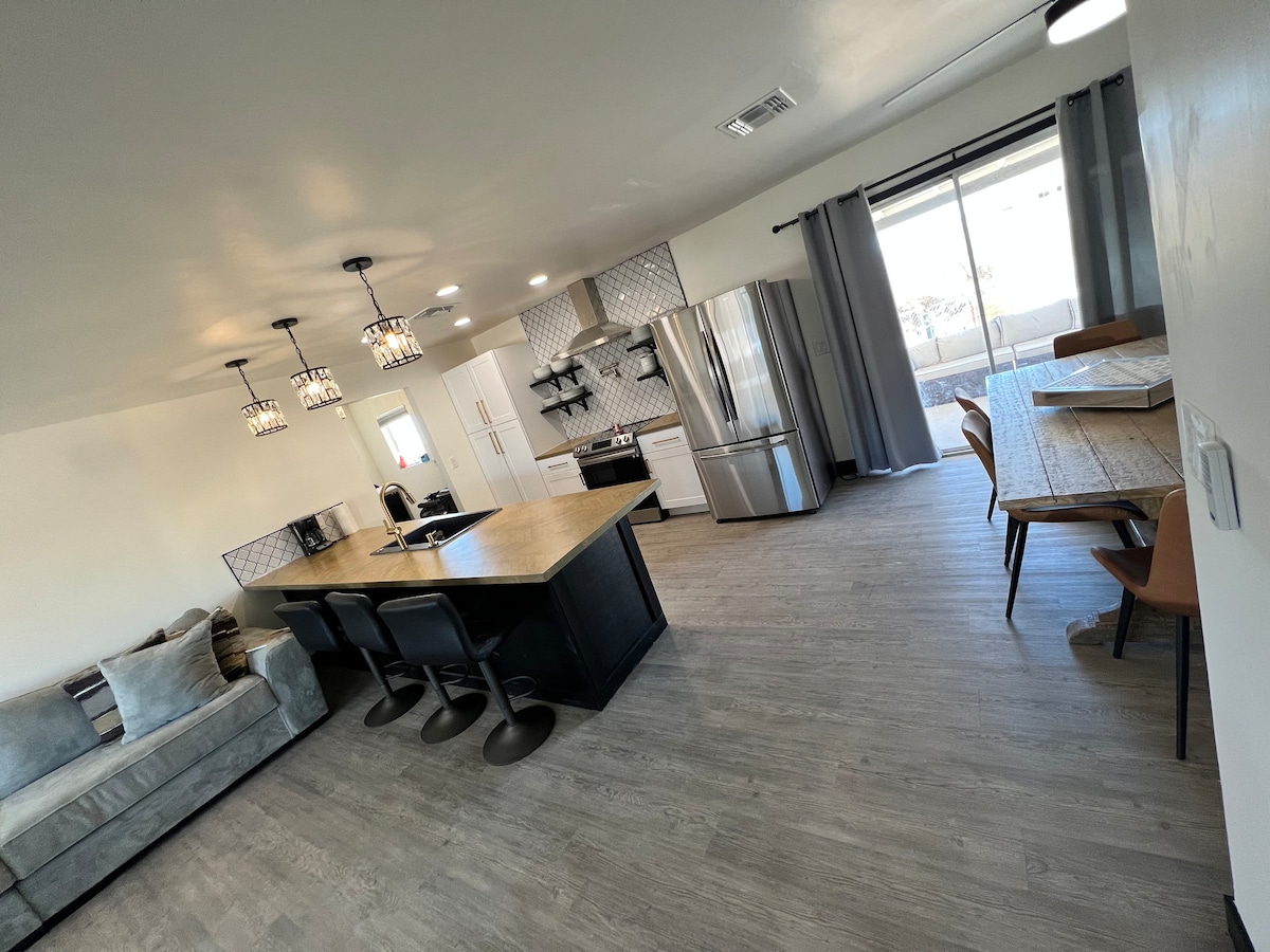Enjoy your visit to Lake Havasu in this newly remodeled desert boho themed vacation rental! This home is 3 bed, 2 bath with a pool, outdoor dining area & private pool room/casita. Gated side yard boat/rv parking provided. The location is in a quiet neighborhood, and is minutes from Windsor/ State park boat ramp. This home is located minutes away from grocery stores and Walmart. Smart TVs, Internet and many more accommodations provided! A fully loaded kitchen is also provided.