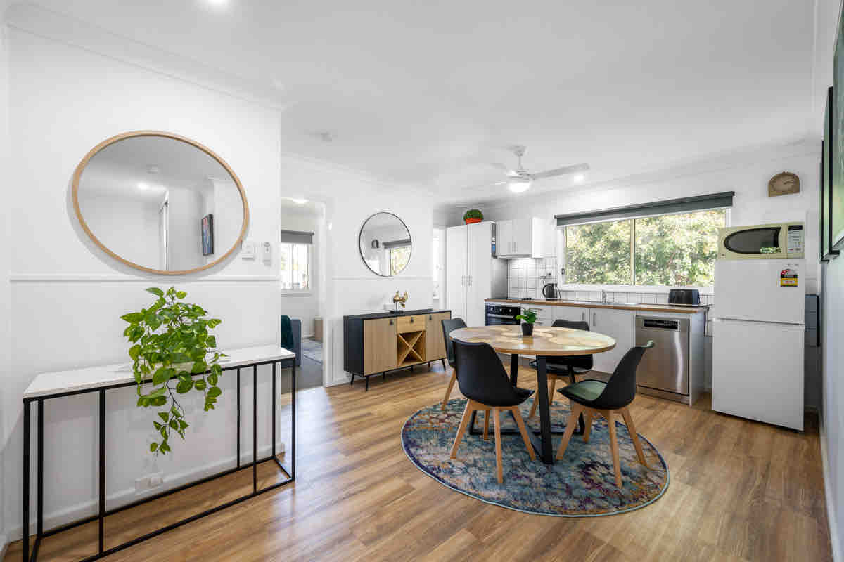Beachside Retreat Granny Flat🏝️☀️ This affordable, detached, cosy, self-contained granny flat is the perfect convenient base for those who love to explore. Just moments from the beach, it offers a private and comfortable retreat with home-style amenities, including a fully equipped kitchenette, lounge w/ TV, bathroom with washing machine & a huge yard. The flat also features a king bed and a separate bedroom with a double bed and space for an extra mattress. Experience the coast like a local.