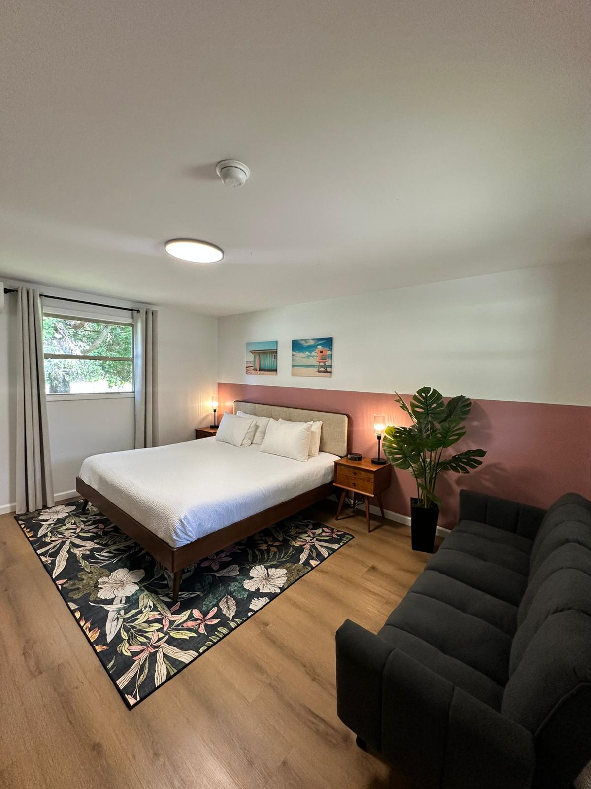 The Inn at Shady Pines (an ode to The Golden Girls) is locally-owned and remotely-operated by a group of friends who met as real estate agents in metro Detroit. After an extensive renovation, we are proud to offer 10 beautifully updated rooms with either one king bed and a pull out sofa or two queen beds. All rooms come with a kitchenette, refrigerator, microwave, coffee makers, TV, private bathrooms, basic toiletries and views of Lake Michigan.