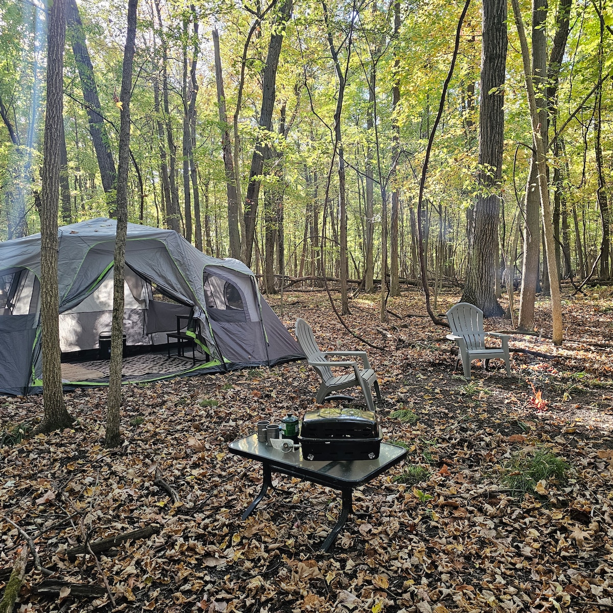 Group friendly. Experience glamping with the luxury of an outdoor kitchen. Start your mornings with the gentle sounds of nature and the peaceful flow of the nearby river. Spend your days exploring scenic wooded trails and your evenings around the campfire. We do offer a 9-person tent for an additional $75—perfect for couples or families who just want to arrive and relax, with little to no setup required. If bringing your own tent, you can choose your site anywhere along the river.