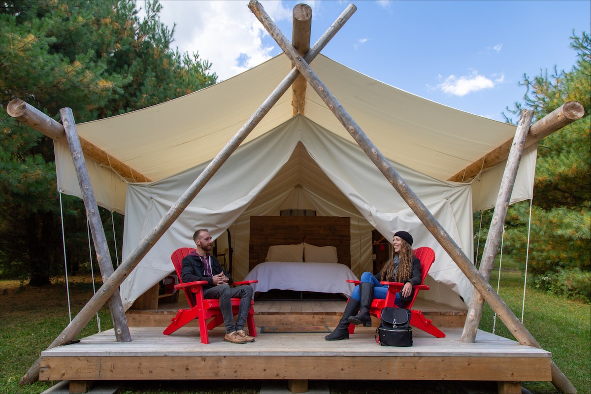 Get away and stay under the stars. In your private Glamping Tent. Enjoy a shared woodfired sauna and hot tub, followed by cold plunge. Only 45 minutes north of Toronto we offer a respite from the hustle and bustle. As the night falls, gather around a crackling, fire pit, swapping stories and laughter under the starry sky. When culinary inspiration strikes, a shared kitchen is at your disposal, providing all the necessary tools to craft a delightful meal to savour under the open sky.