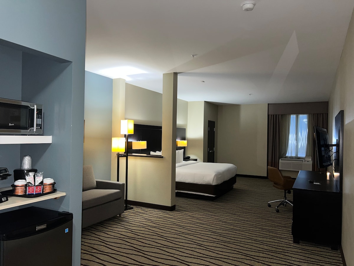 平均评分 5 分(满分 5 分),共 9 条评价豪华加大双人床酒店套房,带早餐,靠近HOBBY