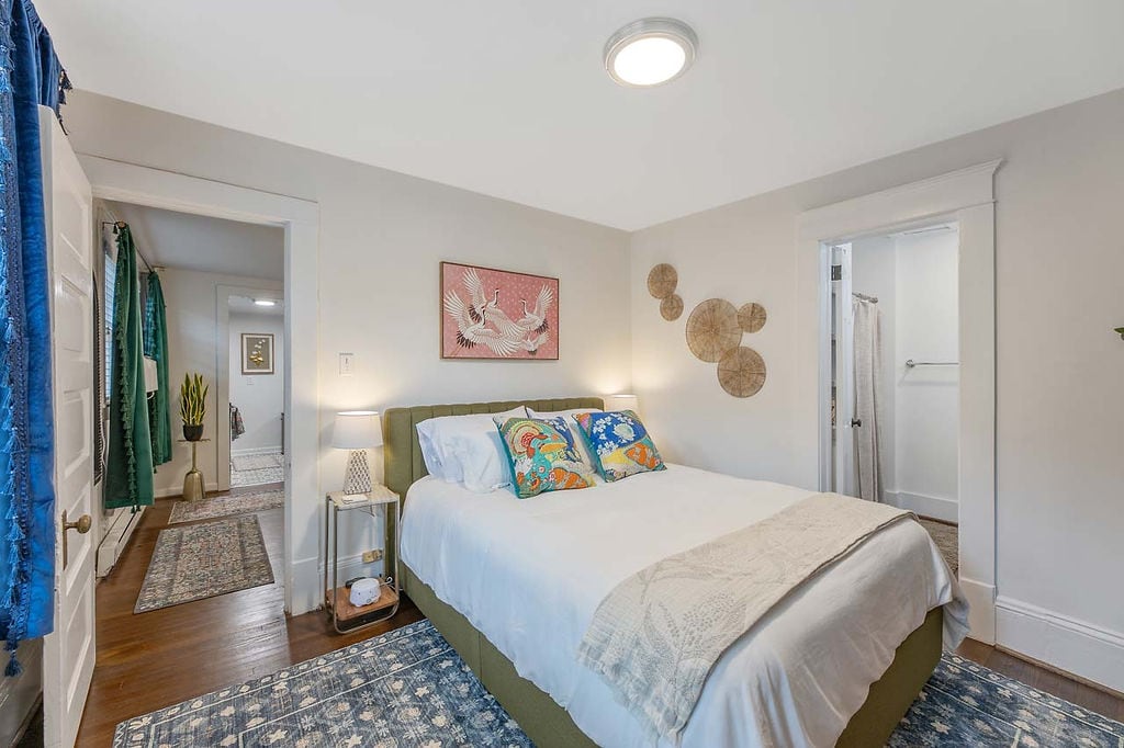 This is a large beautiful second floor suite with a queen size bed that opens onto a huge veranda. The suite has a private entrance, bath and large sitting room. The home is located in historic Hayes Barton, close to downtown Raleigh and Glenwood South district. Hayes Barton is a safe, shady historic neighborhood with cafes, restaurants and breweries within walking distance. Quiet, not good for parties. https://abnb.me/e99n7p2i7O is the same suite with two bedrooms. $20 cleaning fee per visit.
