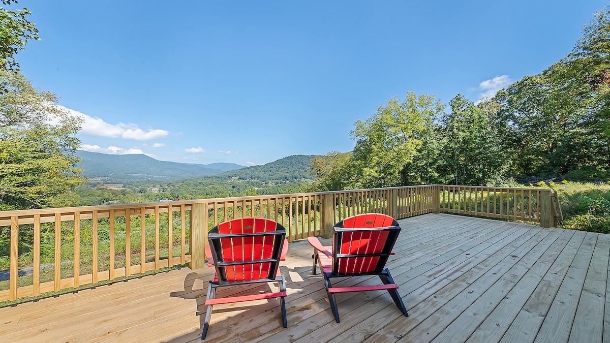 Mid-century meets mountain hideaway. Panoramic mountain & golf course views give this gorgeous home a luxurious feel. This home is one mile from Maggie Valley Country Club (golf and restaurant open to public), trout streams & hiking trails. Whether you are an outdoor enthusiast looking to ski at Cataloochee, take a day trip to Asheville to enjoy breweries, Cherokee to visit the Casino or drive the Blue Ridge Parkway, this is the ultimate getaway. Sleeps 6 with over 1500 sq ft of outdoor deck!