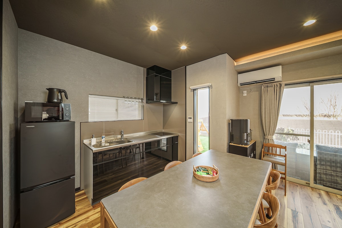 標高900mに位置する、避暑地の別荘地帯にあります。 1日1組限定なので、お子さまがいらっしゃっても気兼ねなく過ごせます。 九重連山が見渡せるコテージからの眺め、様々な鳥の鳴き声、夜空に煌めく星や月の光をお楽しみ下さい。 気軽に別荘ライフをご体験いただけます。 当Villaは、お食事や食材の提供はしておりません。 近隣には夜に外食できるところが少ないため、自炊がおすすめです。 キッチンには調理家電、器具、食器などそろえております。 また、車で10数分のところに数か所温泉があります。 *4月下旬~10月初旬は庭でBBQができます。それ以外の時期は寒さが厳しくおすすめしません。庭にある炉は無料でお使いいただけます。BBQ用品一式(木炭、網など)は¥2,500でご準備いたします。持ち込みは無料。食材はご自分でご用意下さい。 屋根がないため雨天時は不可。 室内での焼き肉は可能ですが、別途特別清掃費として¥2000頂戴いたします。焼き肉プレートはお申し出いただきましたらご準備いたします。