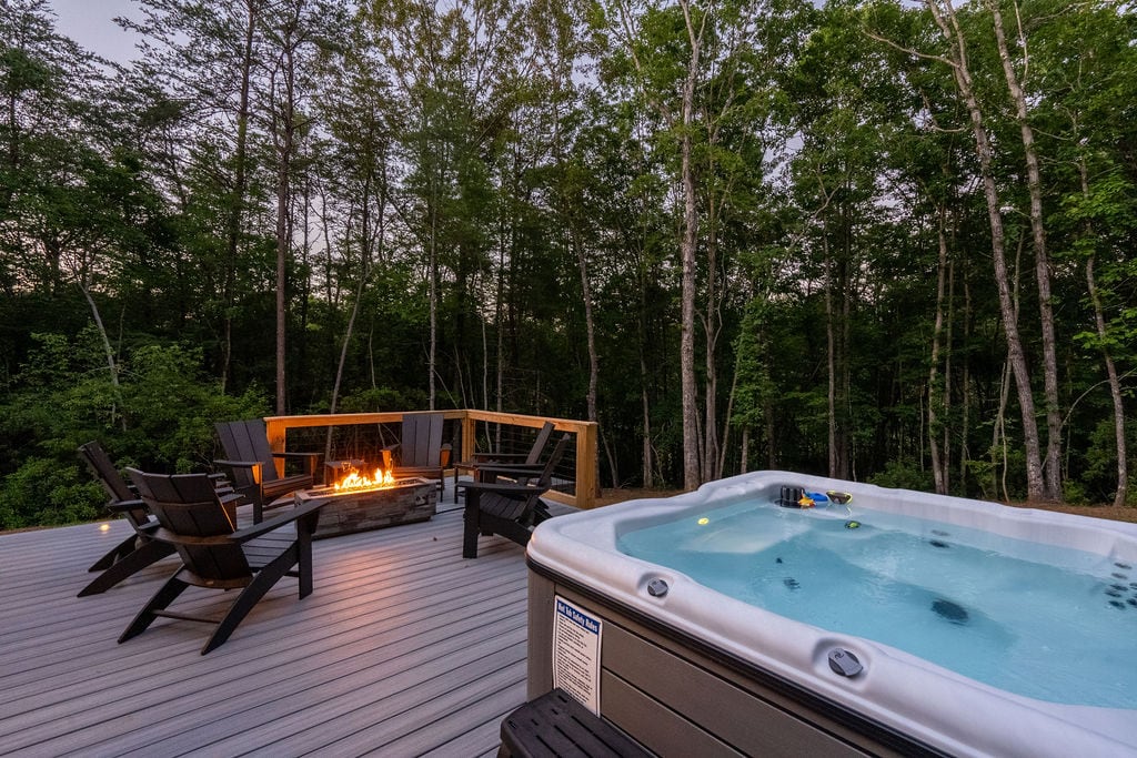 A quick drive from the city and you've arrived at this peaceful escape. Yet when the mood strikes for great restaurants, trendy bars/breweries, or unique small-town shopping, you're only minutes away from downtown Blue Ridge. In this completely updated cabin you'll experience total privacy in the indoor hot tub, gorgeous screened in porch with swing bed and tv, huge walk-in shower, serene firepit, new grill & firepit table. And if you must work before slipping out for a hike, we have fast wifi!