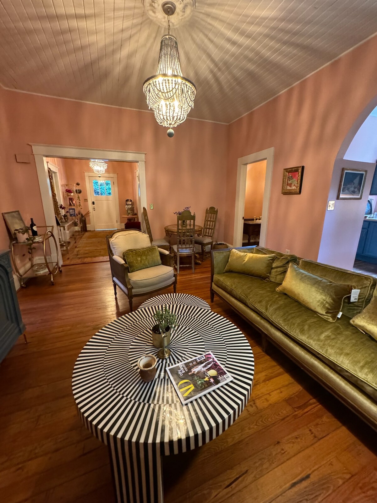 Enjoy your stay at the most unique place around. You will enjoy a unique mix of industrial and rustic decor. Our inground backyard pool is available from May 15th to mid September. Yes, you can have visitors, your aunt, uncle, or grandchildren are welcome to sleep over. This is a family place and we hope you will gather here with your friends and loved ones! Pets considered, please ask! p.s. we have turkeys and chickens.