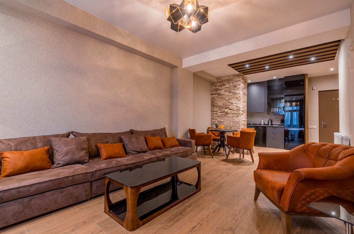 This is a comfortable renovated apartment with exposed brick that has a true Tbilisi feeling. This studio has a transparent bathroom with modern bathtub, king size bed, Chesterfield sofa and etc. The Space (78 sq.m) fits 2 & is located on Old Tbilisi district, on parallel street of main avenue of Georgia Shota Rustaveli Ave. High speed WIFI Internet & IPTV is provided free of charge. Apartment is also well located for transport Metro Freedom Square & Rustaveli stations are walk distance.