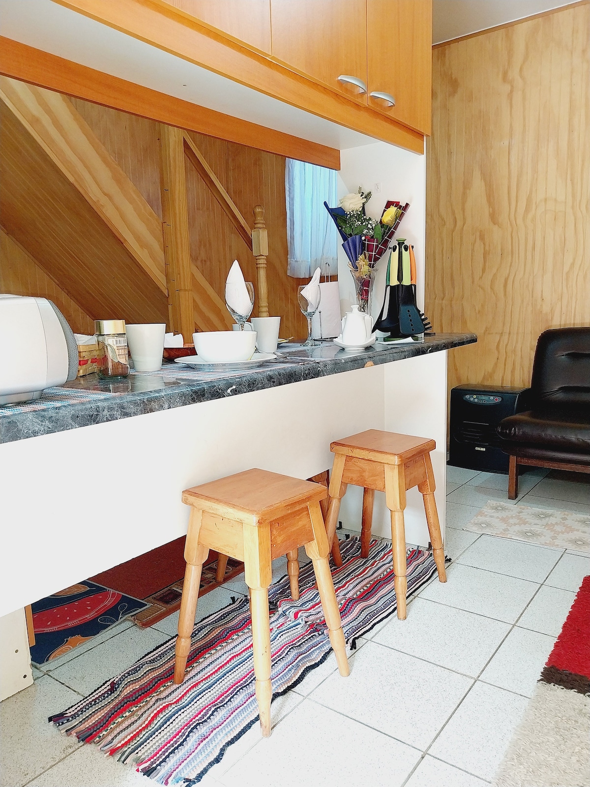 Linda cabaña para 2 personas en excelente barrio residencial, muy tranquilo, silencioso y seguro, con una linda vista a una pequeña quebrada y estero, cerca del lago, Costanera, restaurantes, ideal para tener como punto de partida a todos los lugares turísticos de la zona. Perfecta para una pareja o persona sola. Se puede habilitar espacio y escritorio a quien requiera trabajar en forma remota.