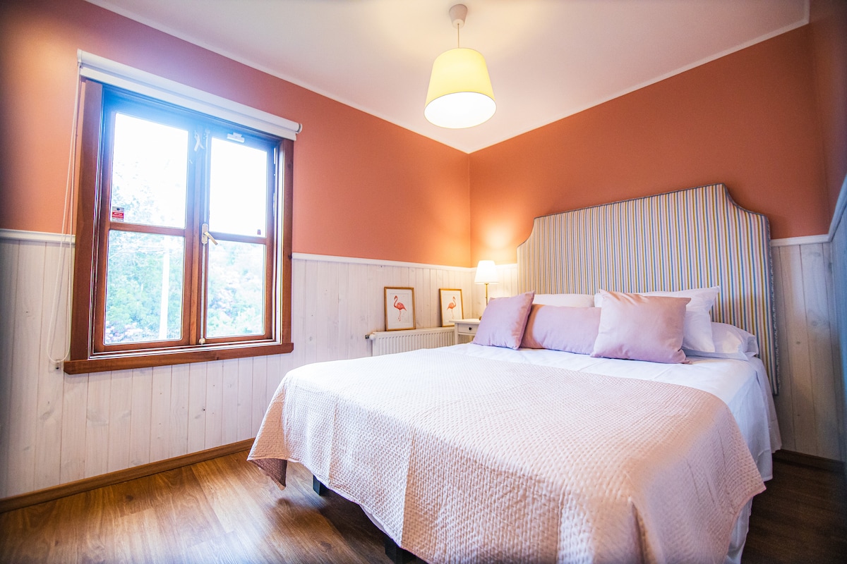 Ubicados a solo 30 metros del Lago Llanquihue y a solo 3 cuadras del centro de la ciudad, en un entorno tranquilo. Nuestras habitaciones matrimoniales son modernas y bien equipadas, con baño privado, cama confortable, cafetera y escritorio, ideales para tu descanso o trabajo. Ofrecemos un espacio acogedor, cercano a todos los atractivos de la región, para que disfrutes de una estancia cómoda y relajante. Habitación ubicada en un segundo piso, acceso por escalera interna.