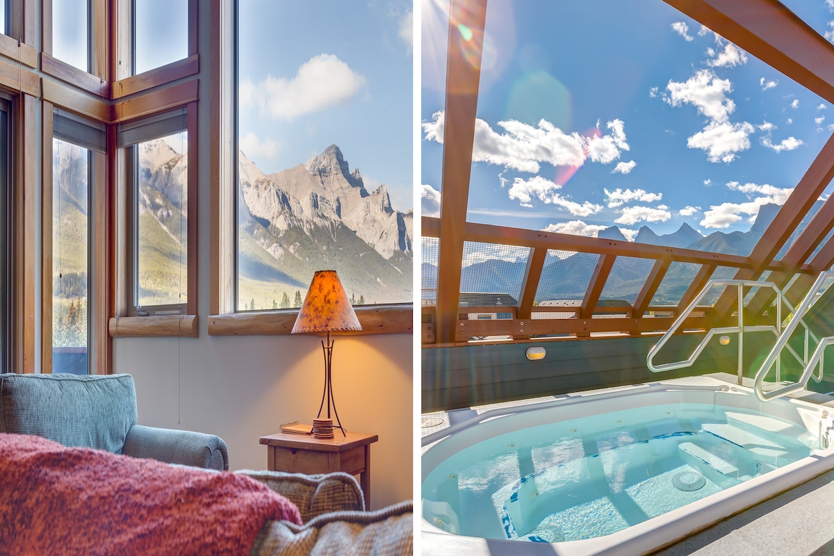We pay the 15% Airbnb Service Fee for you! 5 Min Walk to Downtown Canmore 6 Min Drive to Banff National Park 53 Min Drive to Lake Louise Escape to this top-floor penthouse in the mountain town of Canmore! This spacious, beautiful suite offers epic mountain views, two bedrooms, and guest access to a shared rooftop hot tub. It is just a short 5-minute walk to downtown Canmore.