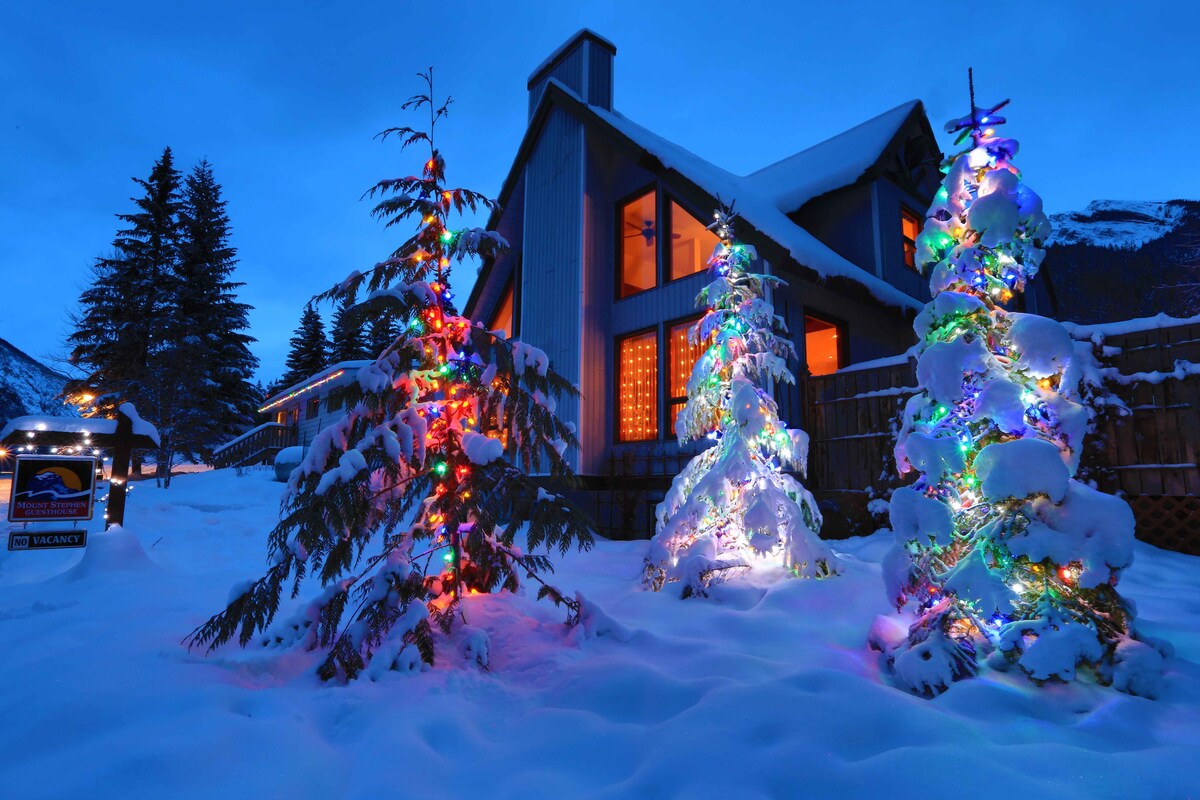 The Mount Stephen Guesthouse is a lovely bedroom lower level apartment. It is fully furnished with cozy duvets on the beds, a complete kitchen with full size electric stove and refrigerator. Condiments like tea, coffee and hot chocolate. Comfortable living area, small library and many extras. Fully self-contained suite with private entrance, and all the comforts of home.
