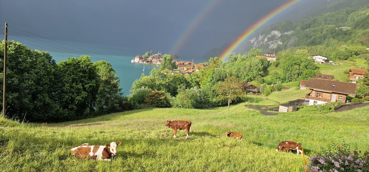 Diese charmante Unterkunft in Brienz mit Blick auf den Brienzersee befindet sich in einem Haus von 1896, welches sanft renoviert wurde. Die Lage ist einzigartig, etwas erhöht und ruhig, der Bahnhof in wenigen Gehminuten erreichbar, der See 3 Minuten entfernt... eine Wohlfühloase zum Entspannen, ideal für sportliche Aktivitäten und Ausflüge in der Umgebung.