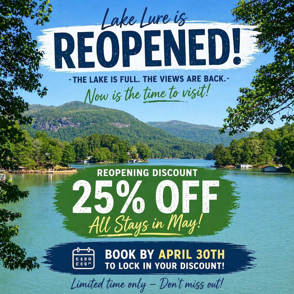 Welcome to your beautiful modern cabin retreat sits directly on one of the most sought-after private community coves on Lake Lure (partially open now!). Amenities include an oversized screen porch w/ propane & charcoal grill, ping pong table, hot tub & Solo Stove fire pit, a covered outdoor area with swings & outdoor daybed swing, a huge, comfy living room, a stocked kitchen with popcorn and coffee, & a bonus room w/ foosball table. When the weather is warm, you can take out the house kayaks!