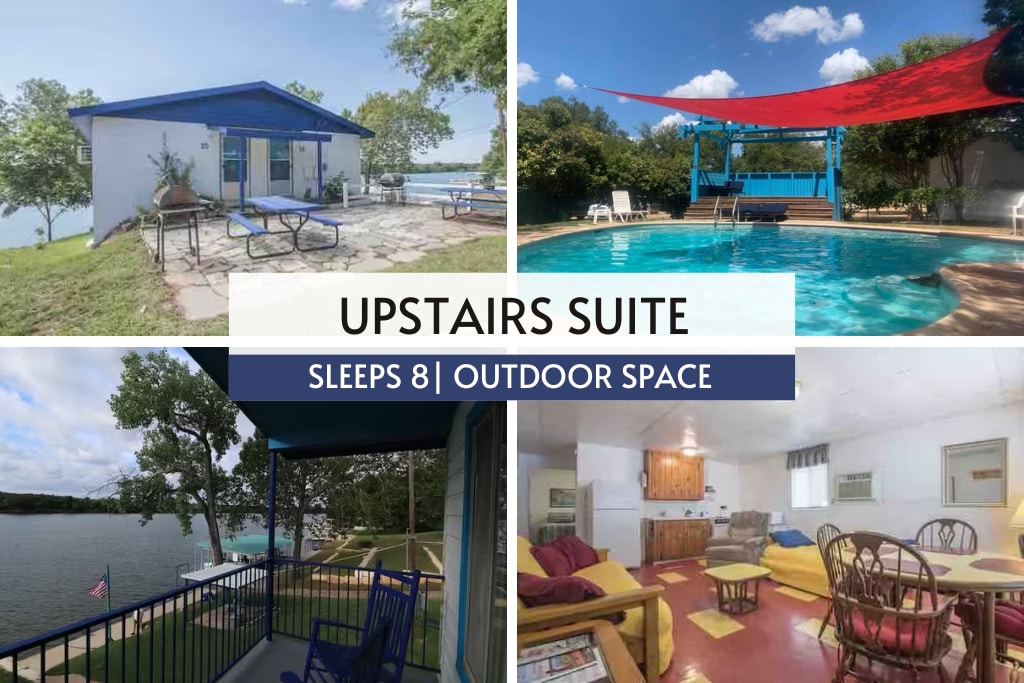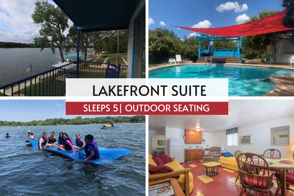 Welcome to Lakefront Suite 14 at Valentine Lakeside, part of the charming Lakefront Suites Collection — a two-story quadplex overlooking beautiful Lake LBJ. The Upper-Level Suites, like Suite 14, are conveniently located at ground level with easy access from the parking area, while the Lower-Level Suites sit just below, accessible by a short walkway that gently slopes toward the water’s edge.