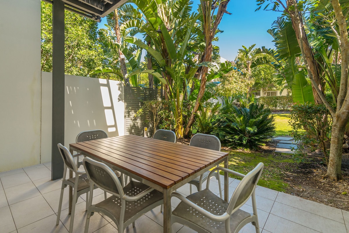 Enjoy the comfort of an entire two-storey townhouse — more space, more privacy and room to truly settle in. Two living areas, a private balcony and outdoor dining give you flexible places to relax together. Set within landscaped gardens and just a short walk to Caves Beach and local cafés, it’s an easy base for morning swims, coffee runs and laid-back coastal days.