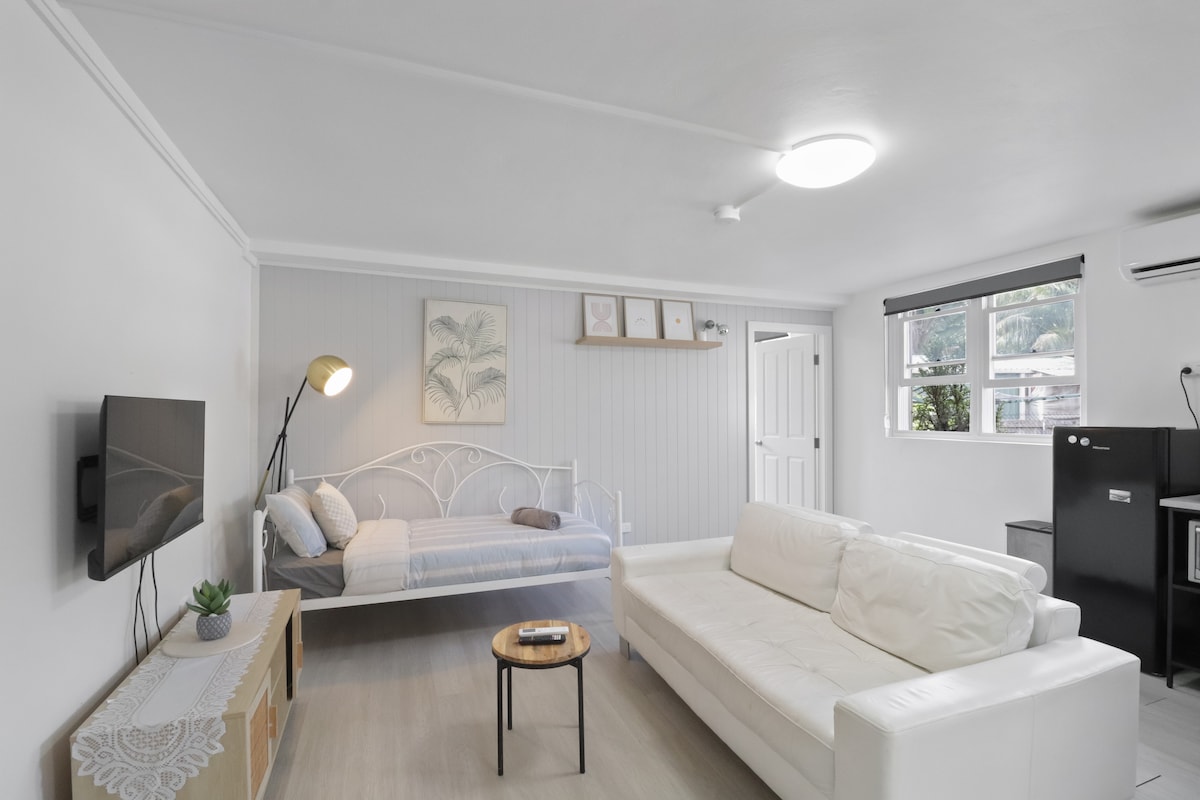 Fully self contained studio on an absolute waterfront property, separated from the main house and with full access to the waterfront. This freshly renovated studio offers a king size bed , private en-suite, lounge-dining and kitchenette with all you need for a getaway on the shores of Lake Macquarie. Enjoy full use of the waterfront location using our kayaks , paddle boards, fishing gear and deep water jetty. Sundowners , lazy days awaits you.