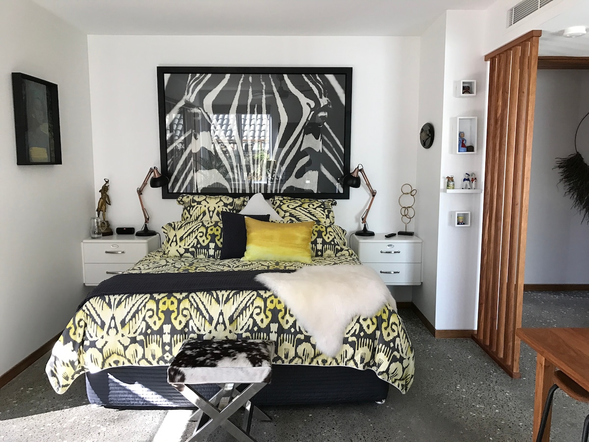 Bali-inspired poolside studio nestled in tropical gardens, with a private leafy outlook, separate entry and exclusive use of the sparkling saltwater pool. Fully self-contained, it is within easy walking distance of the patrolled beach, local shops & cafe and Caves Beachside Hotel. Continental breakfast, reverse cycle air conditioning, free Wifi & Netflix are included. Pet friendly on application, please contact us prior to booking. Not suitable for children under 8 years old.