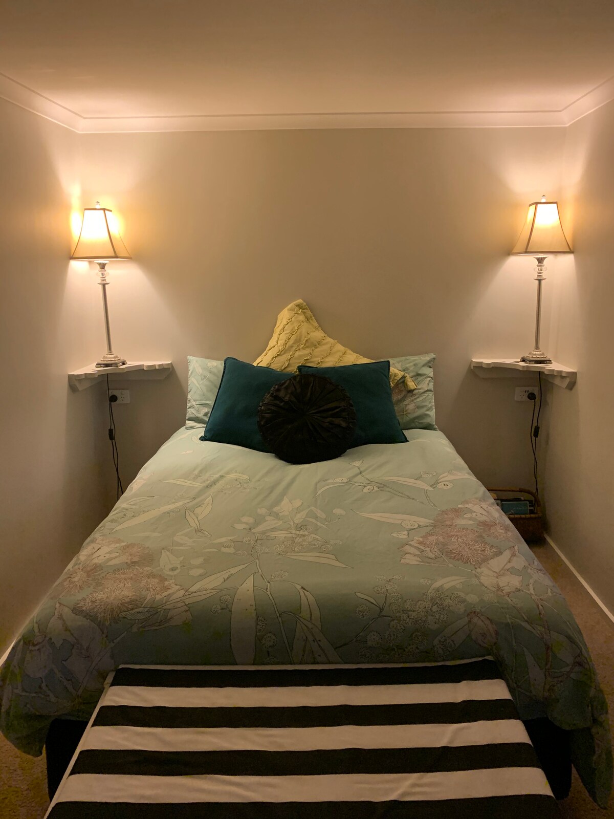 The Cabin is a large room divided by a large wardrobe and Hutch with the bedroom (Queen Bed) on one side, and the living area on the other. In the large Bedroom area there is also a desk and smart TV, Netflix, and the toilet/shower room is accessed there. The kitchen is well equipped and I provide frozen gluten free and other breads as well as many other provisions. The lounge and chair both fold down into beds (a double, and a single) but are quite firm.