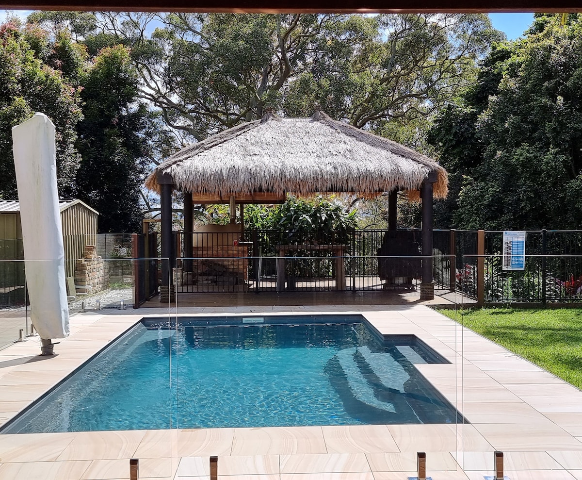 This roomy and private self-contained studio apartment is situated on the lower ground floor of our home. The studio extends to your own outdoor BBQ dining and lounge area with chlorine free hot tub and large game's room. Of course you are also welcome to use our freshwater pool outside the winter season. With nearby beaches and bushland you can enjoy many great outdoor activities. We hope you choose this comfortable, modern, resort life style for your next holiday or weekend away.