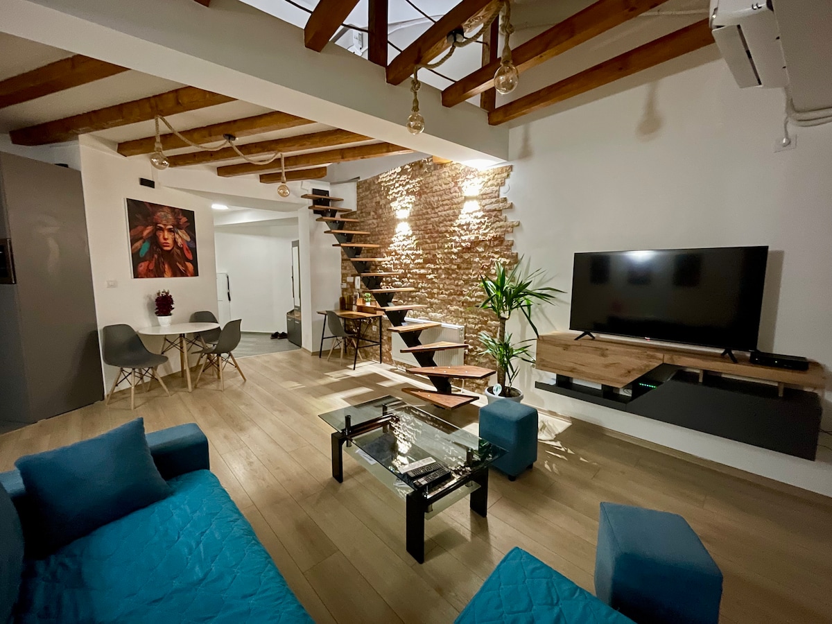 Stunning duplex apartment, recently renovated with modern and spacious design. Nestled in the best neighborhood of Skopje, everything is within walking distance. From the city center and landmarks to the best party places, restaurants and bars - you'll be in the heart of it all. Known for its high property values, this safe neighborhood ensures peace of mind during your stay. Experience the ultimate blend of convenience, style, safety, and a wonderful view in our magnificent duplex apartment