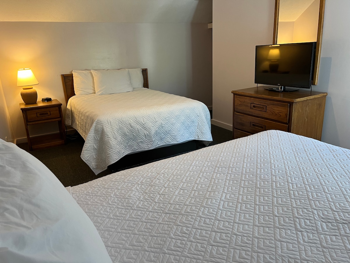 You’ll love our affordable place to stay with plenty of amenities! Our units are just minutes from Downtown Traverse City, and located directly across the street from the Bay! This 2-story, two-bedroom unit is equipped with 1 Queen Bed downstairs, and 1 King Size Bed Upstairs. The bathroom is located on the first floor just outside the bedroom. Please note: Our outdoor pool is seasonal from Memorial Day to Labor Day. Note: Some photos may vary slightly by listing!
