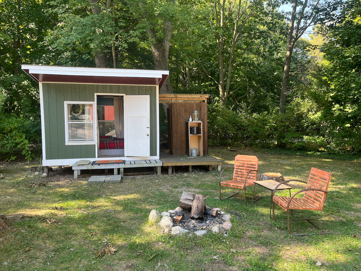 Tiny LOVE SHACK Off Grid Glamping on Park Lake