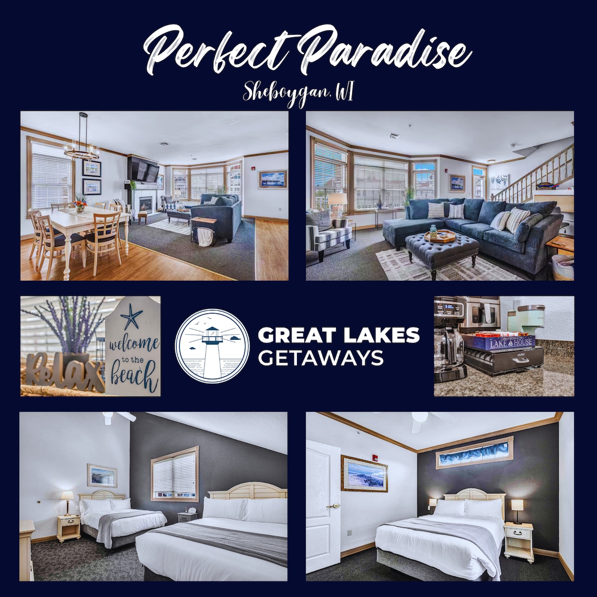 Wandering Waves by Great Lakes Getaways! Take advantage of FLEXIBLE MONTHLY RENTALS—available now through April 30, 2026. Wake up to sweeping Lake Michigan views in this stylish 2BR/2BA beachfront condo! Just steps from the sand, you’ll enjoy sunrise mornings, wave-filled nights, and unbeatable beach access. Inside, a modern open layout offers a fully equipped kitchen, cozy living area, and private patio with serene water views.