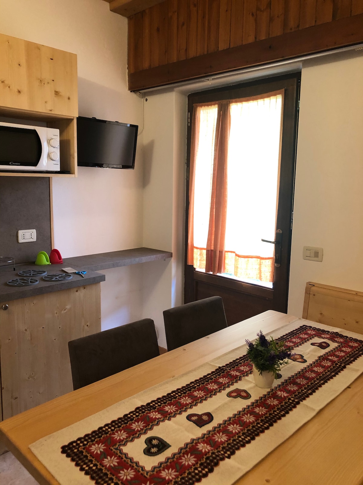 Our house is warm and welcoming, smells of wood, located in the heart of the city. Comfortable apartment along the pedestrian area of Cortina, on the first floor of a typical Ampezzo house from the 1800s, easy to have everything at your fingertips. It consists of a large entrance hall, living room, kitchen and dining area, a double bedroom, a twin bedroom, bathroom with tub/shower. Equipped with dishwasher, washing machine, dryer, TV, Wi-Fi, and all the necessary accessories.