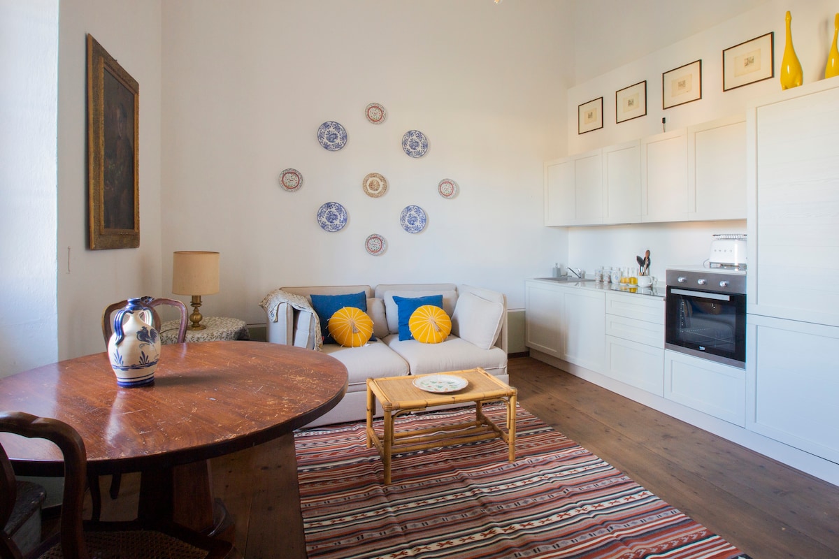 One out of our five delicately renovated apartments located on the second floor of a charming, characterful farmhouse. It is one of the oldest buildings of a cosy little village in the Valle d’Isarco in Northern Italy. We find ourselves right in the center of sun-blessed South Tyrol, on a hilltop at the entrance of the Gardena and Funes valleys. Close to the dolomites mountains but not far away from the popular towns of Bolzano and Bressanone it is an ideal starting point to explore the region.